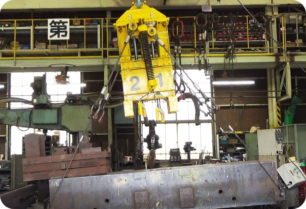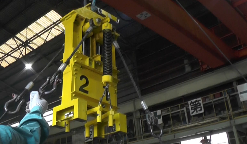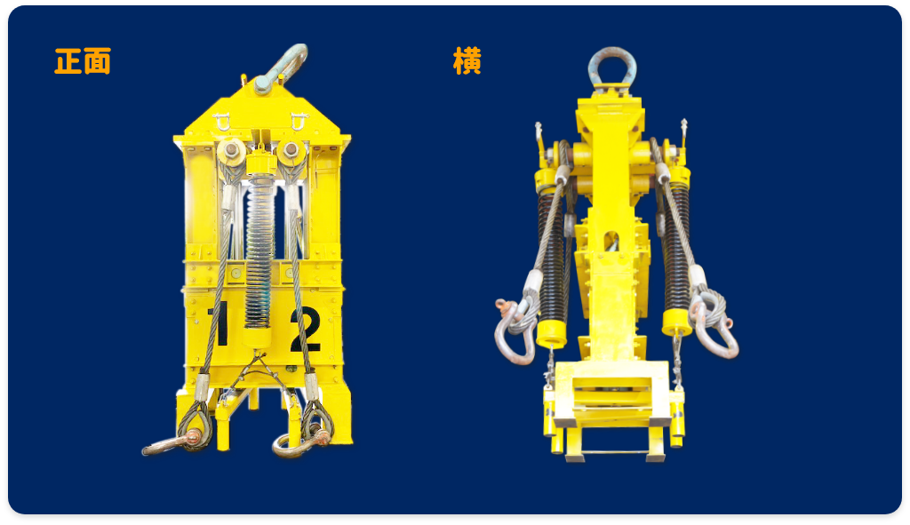 クレーンで吊荷を吊る時、傾いた吊荷を動力なしで、リモコン操作によって簡単に水平にする装置です。吊荷から離れて安全な場所から効率よく作業ができます。