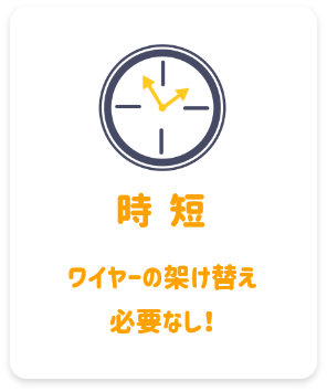 吊荷のワイヤーの架け替えがなくなるので、作業時間を大幅に短縮できます。