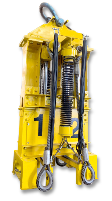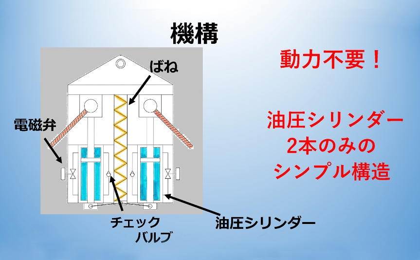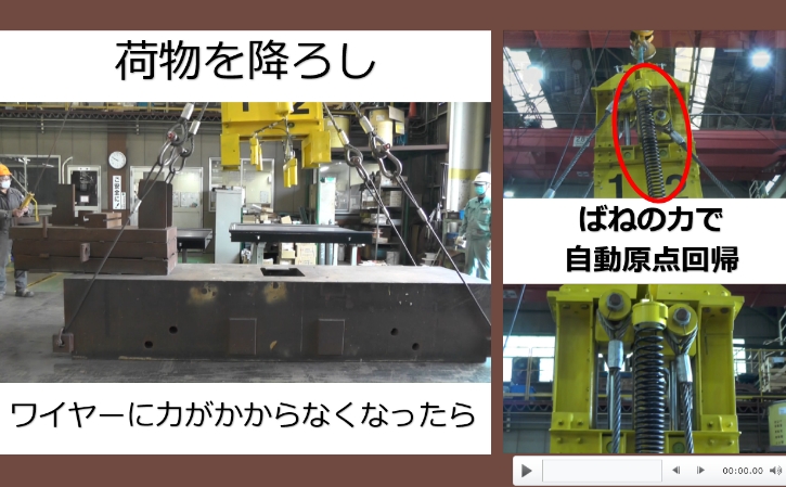 吊荷を置くと吊り上げワイヤーは緩み、シリンダーロットは元の位置へ。次の荷物を吊れる。