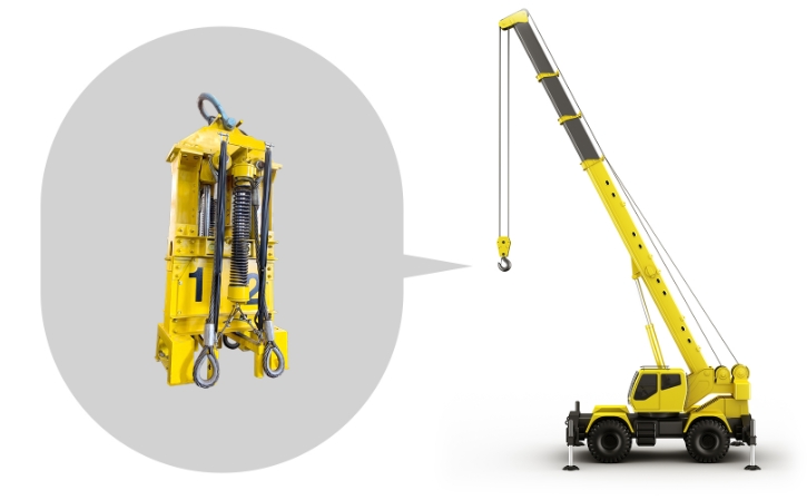 レベラーをクレーンフックにかけて上げるだけで簡単にご使用いただけます。