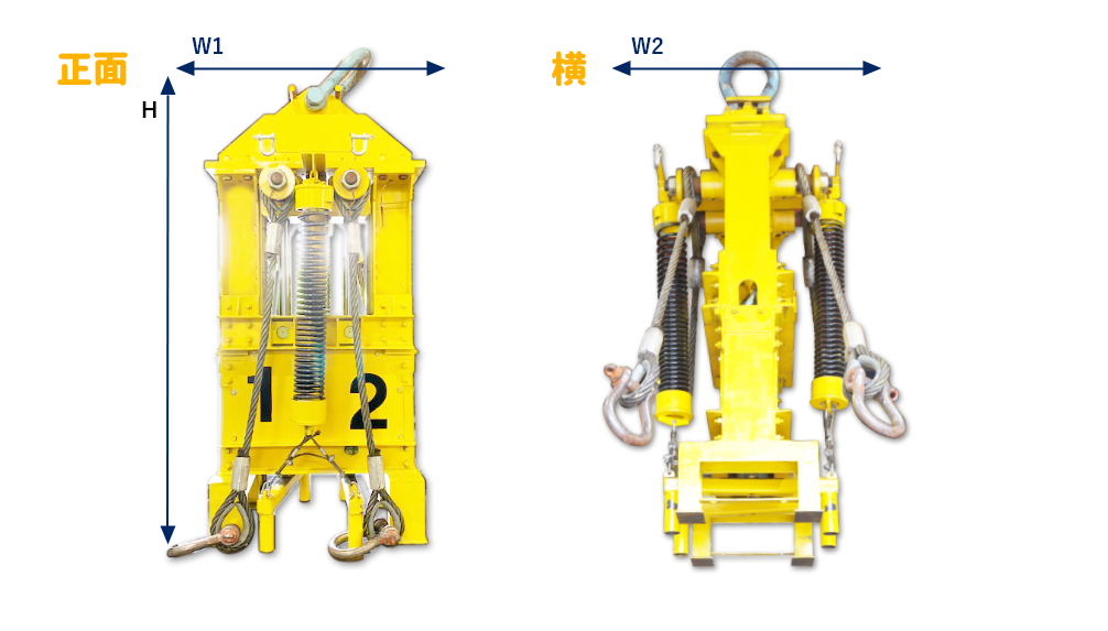 | 形式 | 吊荷重 | ストローク | 自重 | W1 | W2 | H |